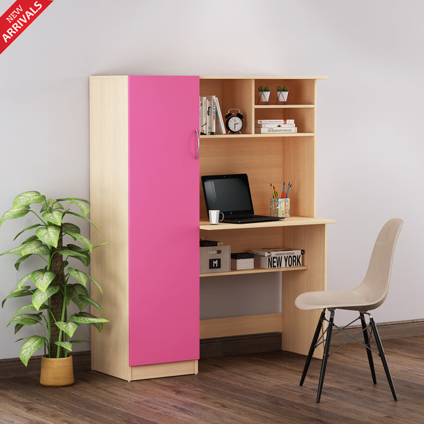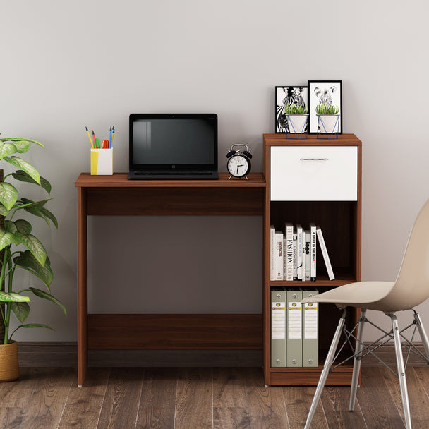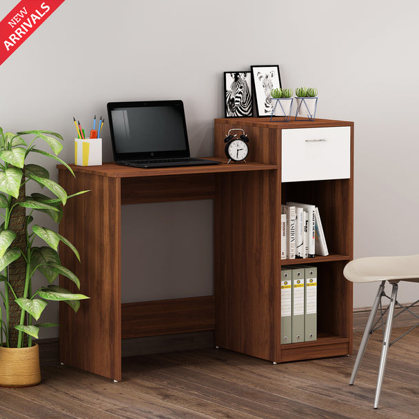 Nector Home Office Table | Beige Teak and Gothic Grey