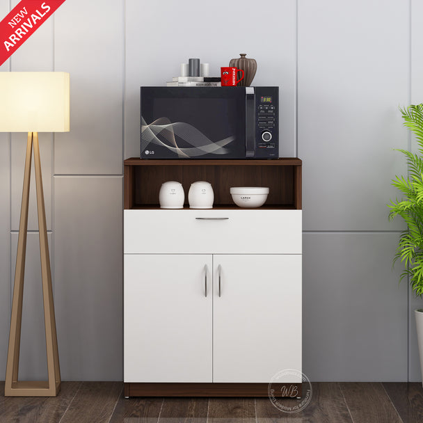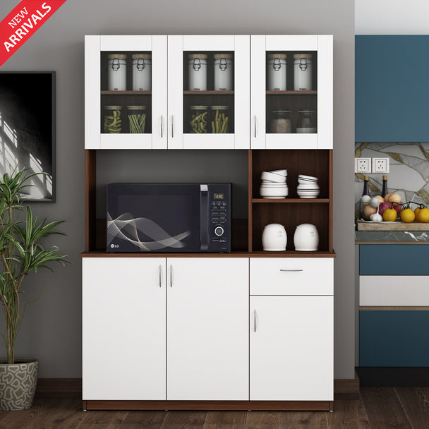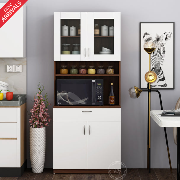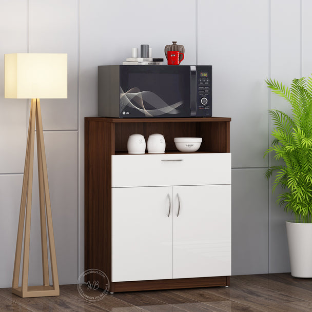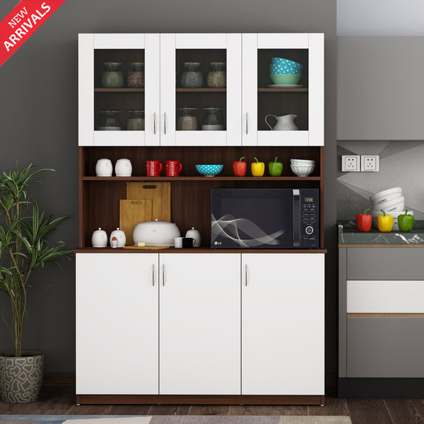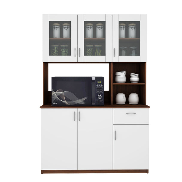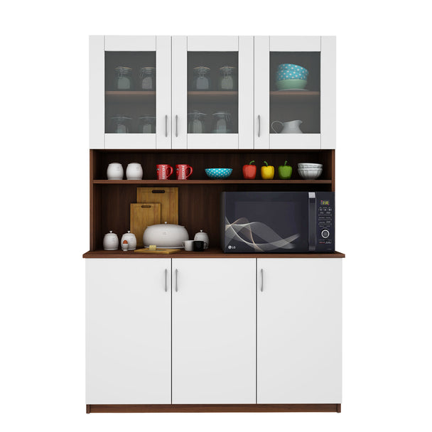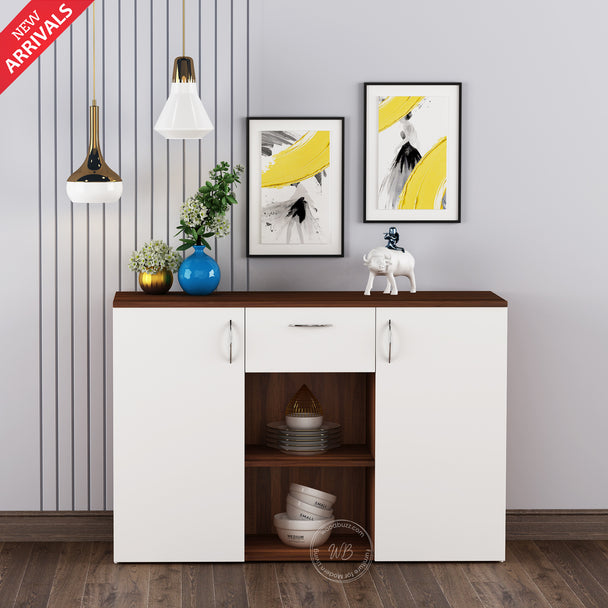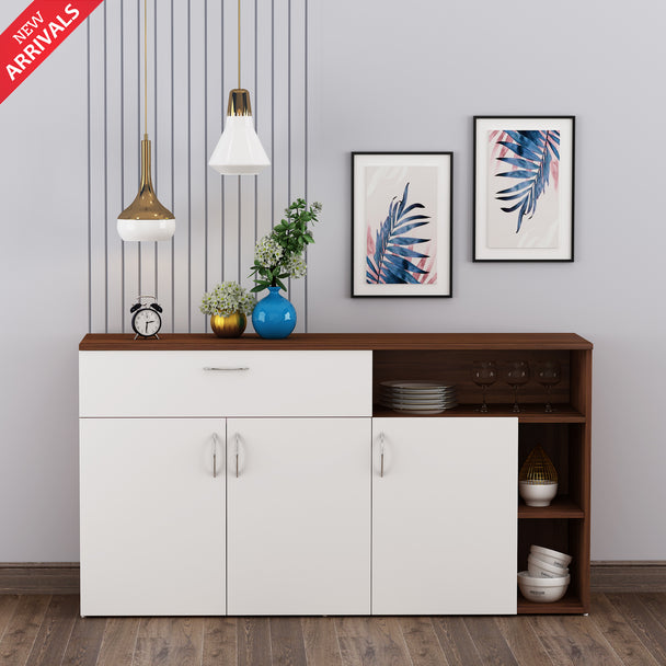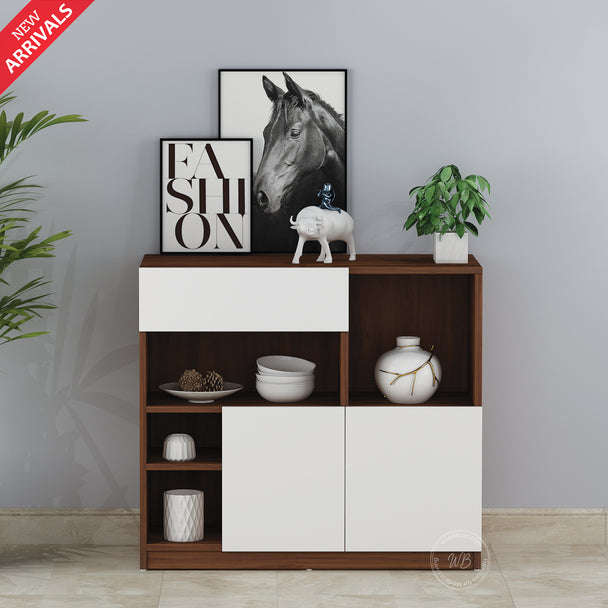 Tyson Side Crockery Unit | Walnut and Frosty White