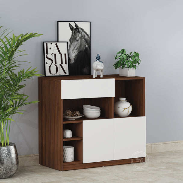 Lisa Side Crockery Unit | Small | Walnut and Frosty White