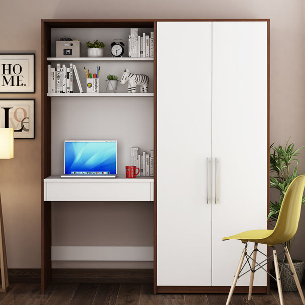 Crest Study Table cum wardrobe | Walnut and Frosty White