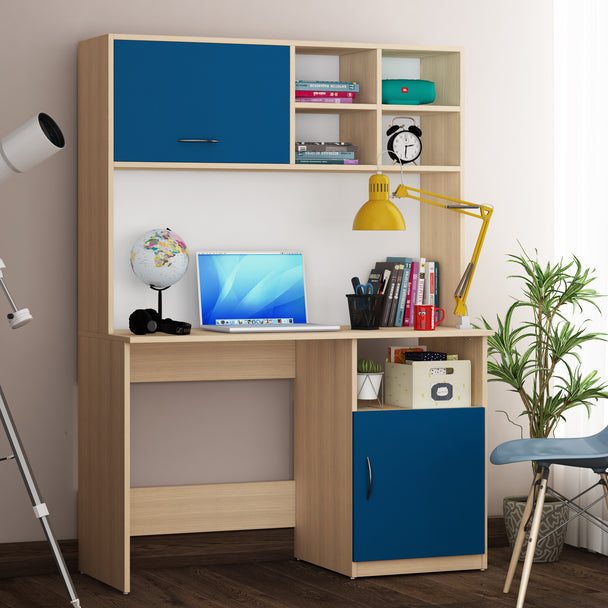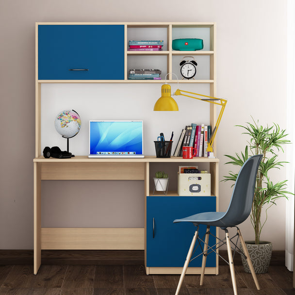 Swotty Study Table with O/H Storage | Blue & Beige Teak