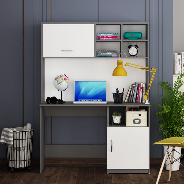 Eager Study Table with O/H Storage | Grey and Frosty White