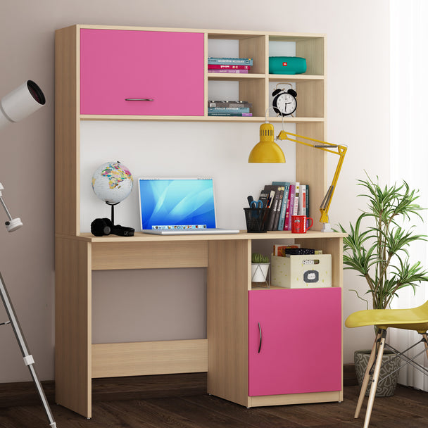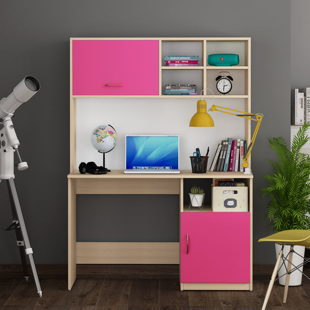 Swotty Study Table with O/H Storage | Pink and Beige Teak