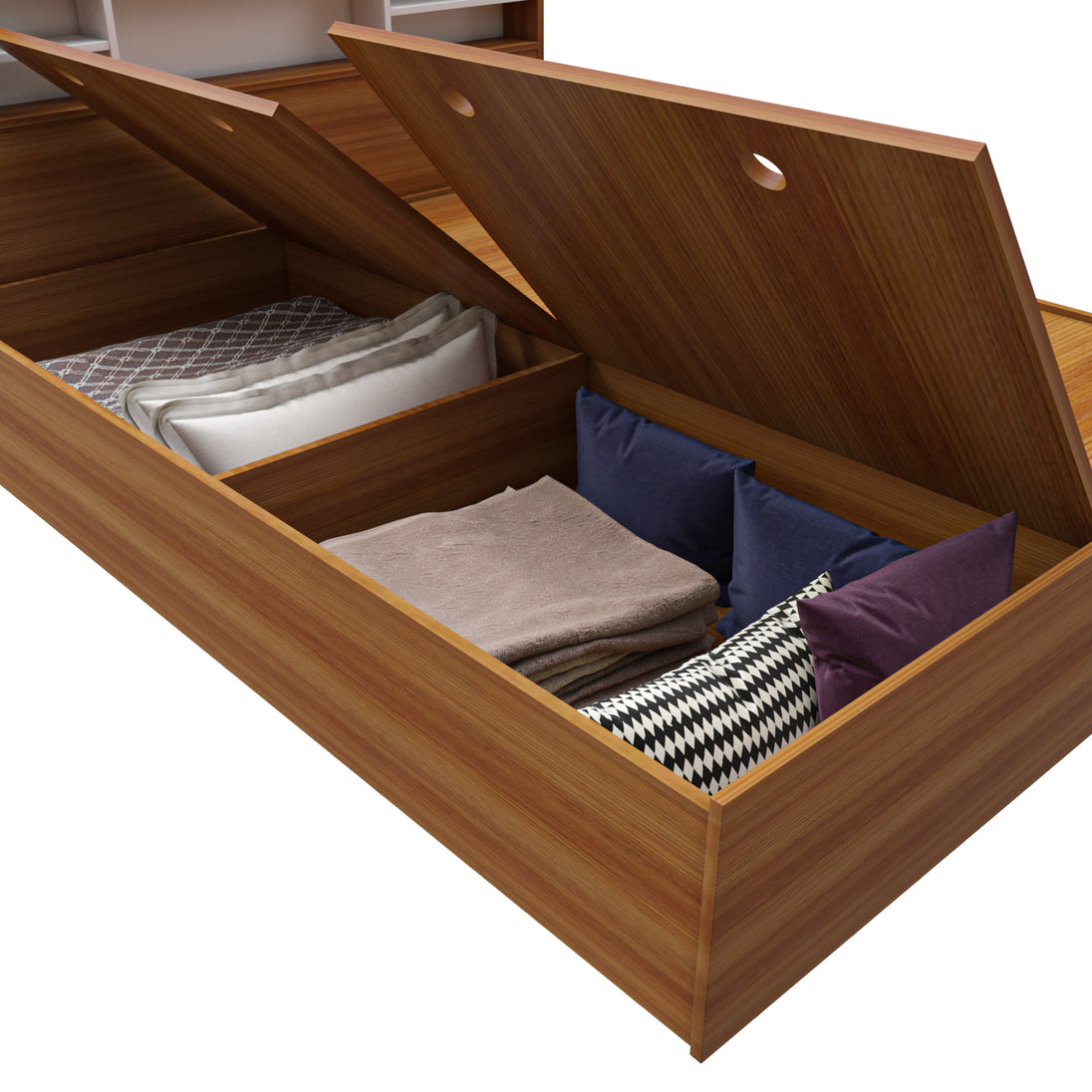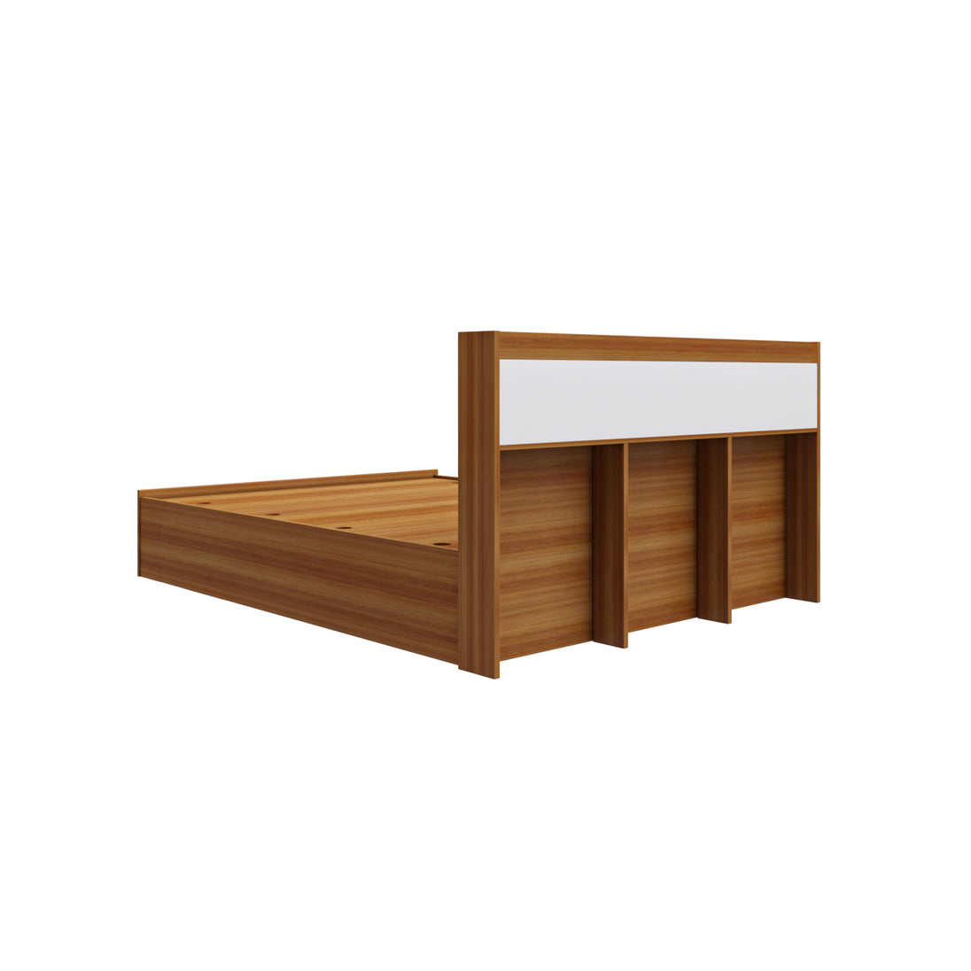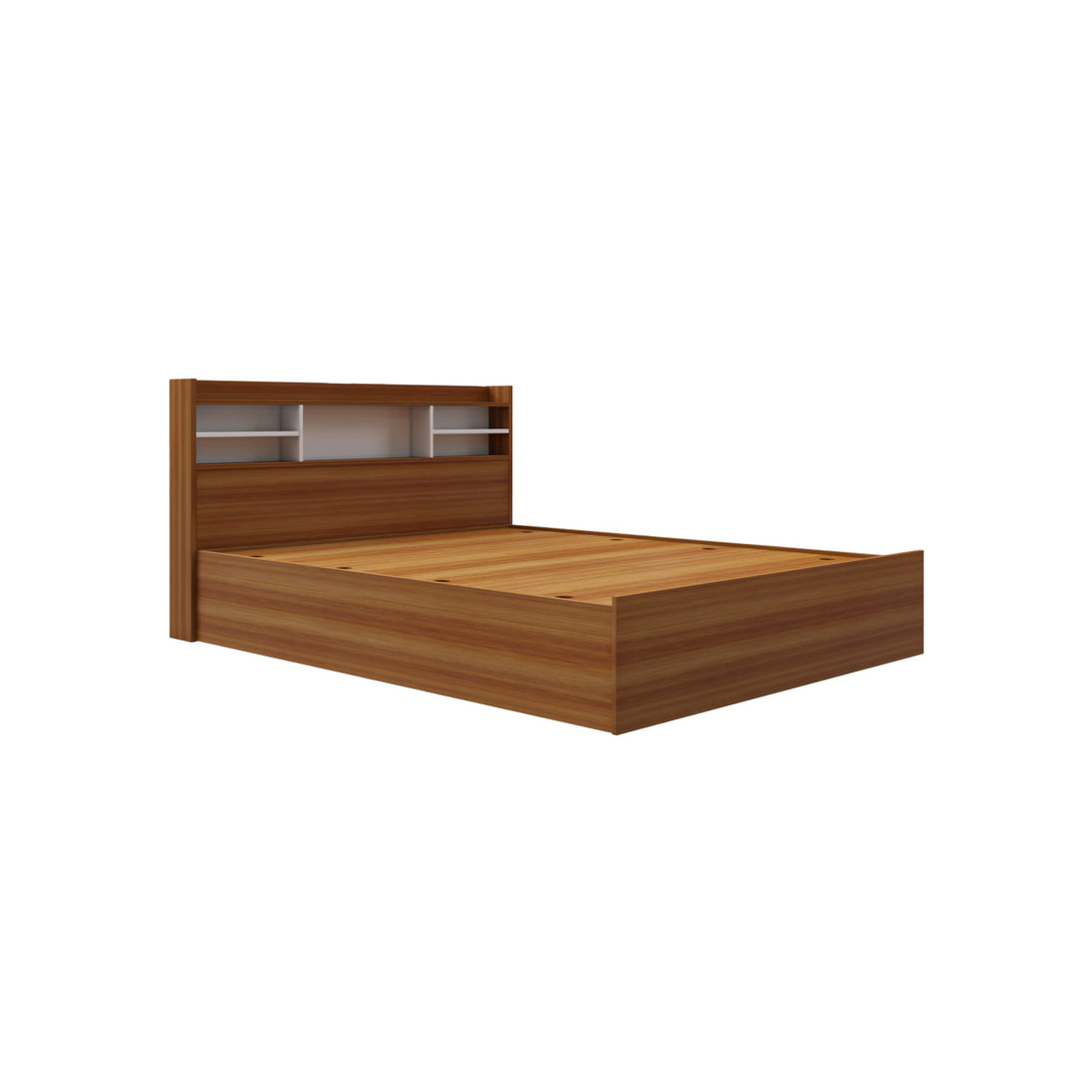 - The headboard of the bed is detailed with open storage head board which is a modern and attractive designer appearance. This bed also assists sufficient storage beneath.