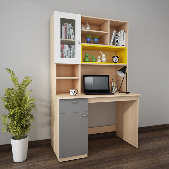 Nector Home Office Table | Beige Teak and Gothic Grey