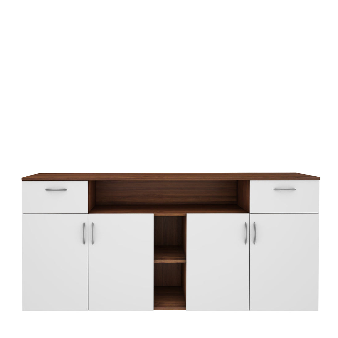 - A combination of two drawers, multiple open shelves and spacious cabinets with racks provides plenty of room to stash away your fine crockeries, cutlery, napkins, and more.