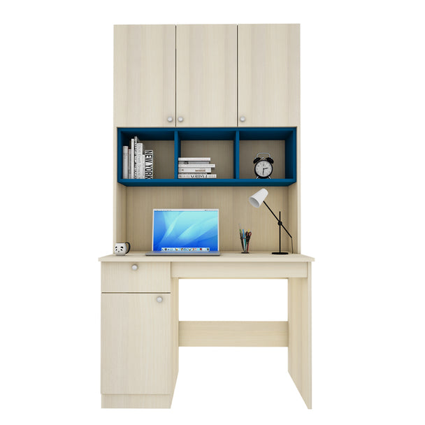 Fusion Study Table with O/H Storage | Beige Teak and Blue