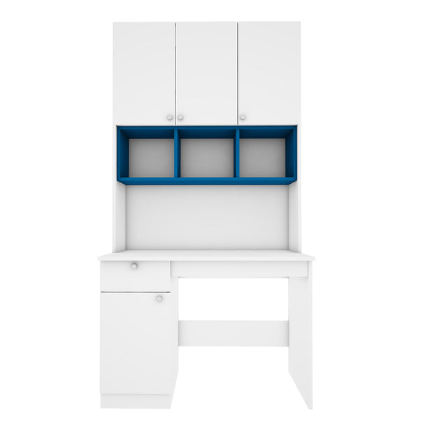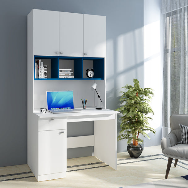 Swotty Study Table with O/H Storage | Frosty White and Blue