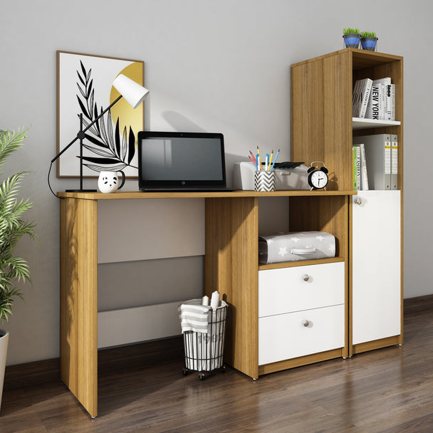 Mistral Home Office Table | Exotic Teak and Frosty White