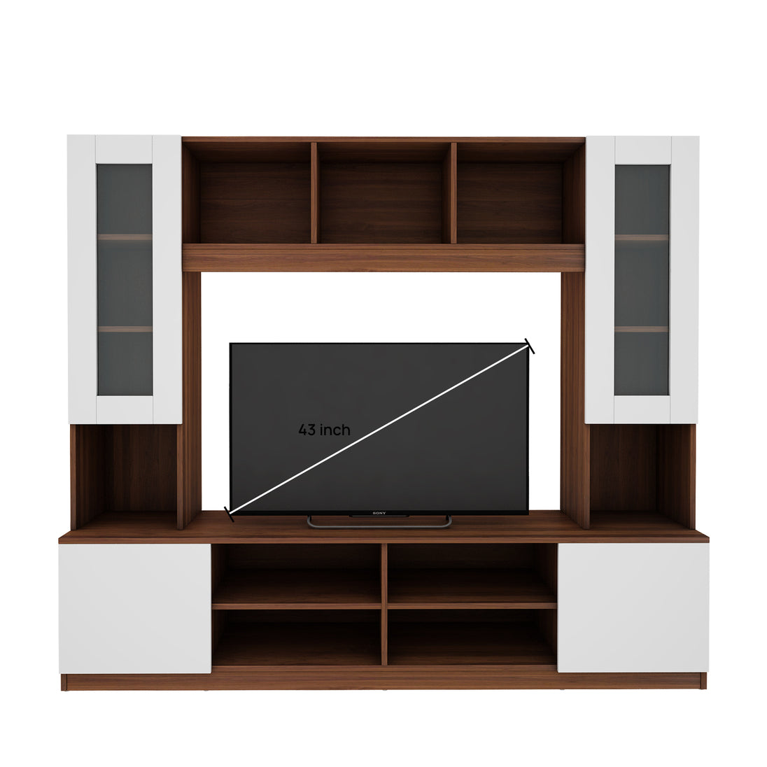 - The gorgeously simple design is elevated and fits TVs up to 43 inches.