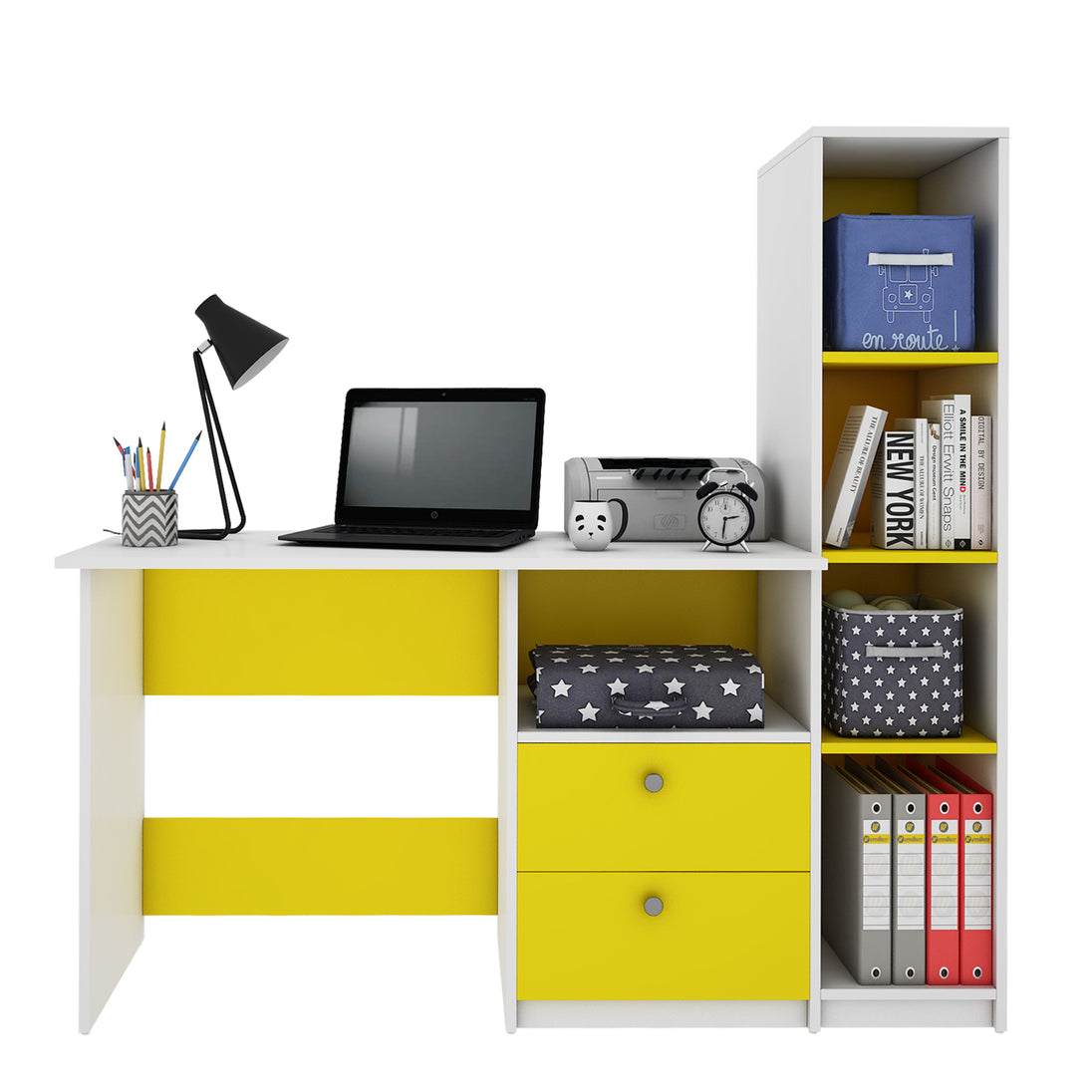 - With large open bookshelves as well as pull-out drawers, accommodate everything you need at your work station