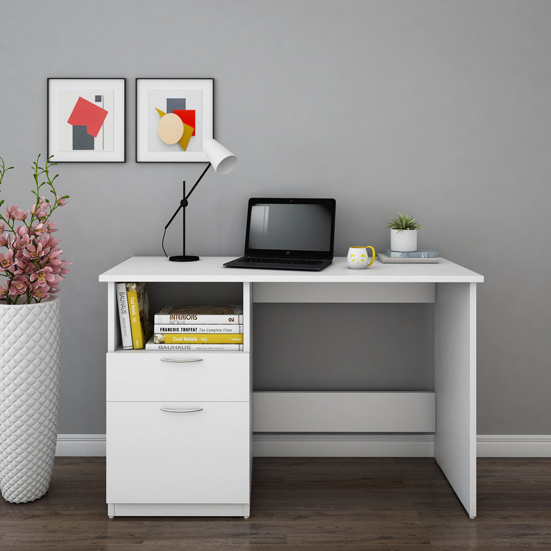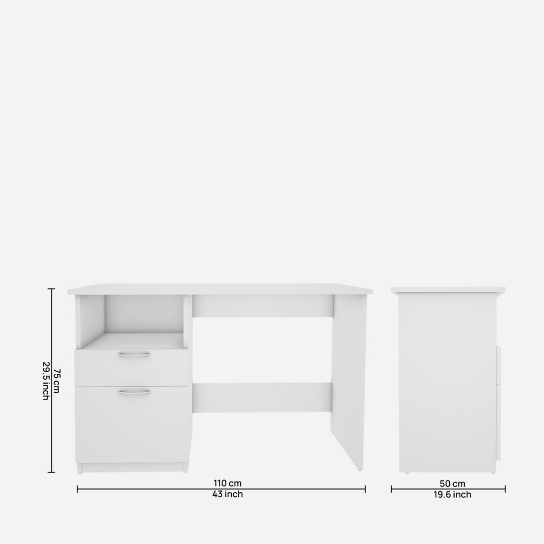 - Perfect leg space to stretch and spacious two drawer’s storage accommodate everything you need at your workstation.
